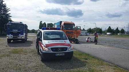 „ÜBUNG ÜBUNG ÜBUNG, Hier Leitstelle Bergstraße mit Übungsalarm für die SEG Betreuung DRK OV Heppenheim und das THW Heppenheim, Verkehrsunfall zwischen LKW und Fahrradfahrer, Person eingeklemmt, mehrere betroffene Personen.“ So lautete die Meldung als die Einsatzkräfte vom Deutschen Roten Kreuz (DRK) Heppenheim sowie vom Technischen Hilfswerk (THW) Heppenheim am Samstagnachmittag um 16:45 Uhr in ihrer Wochenendaktivität unerwartet unterbrochen wurden.